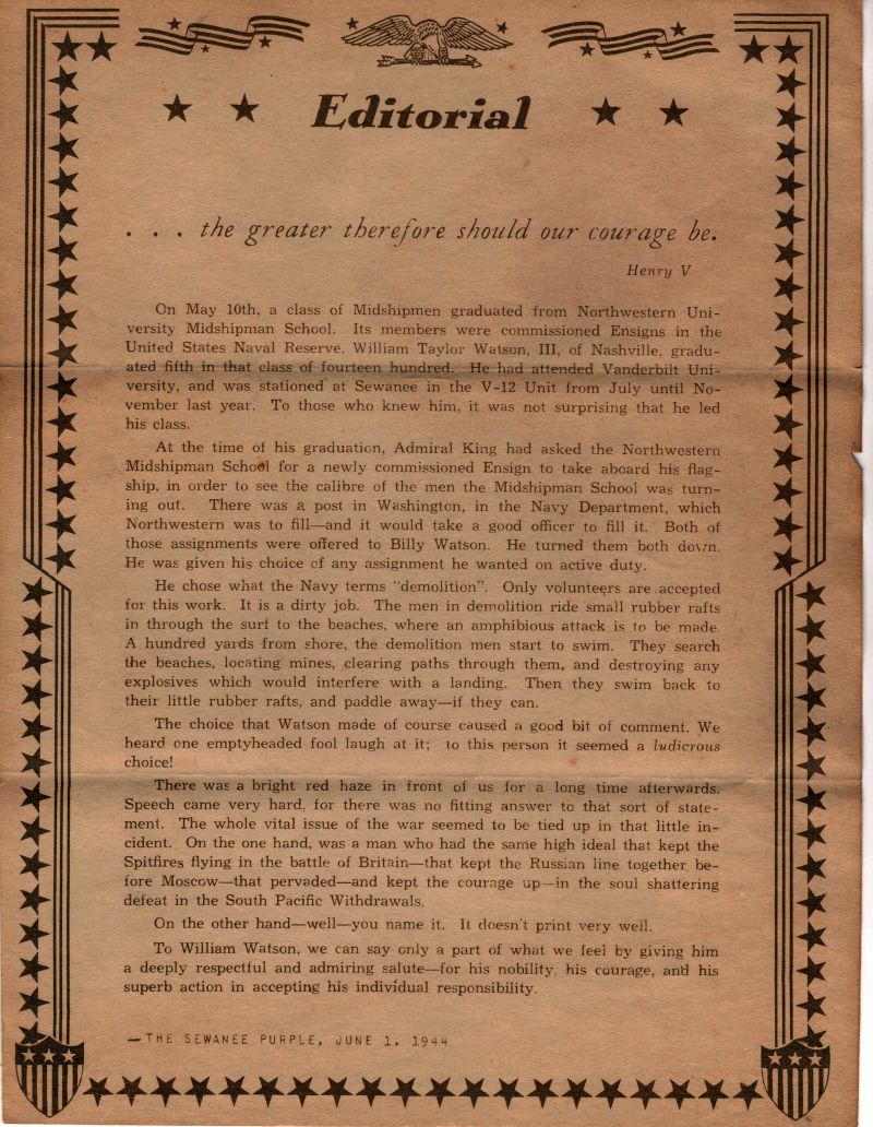 I arrived at Fort Pierce, Florida in May of 1944, assigned to the Underwater Demolition School.